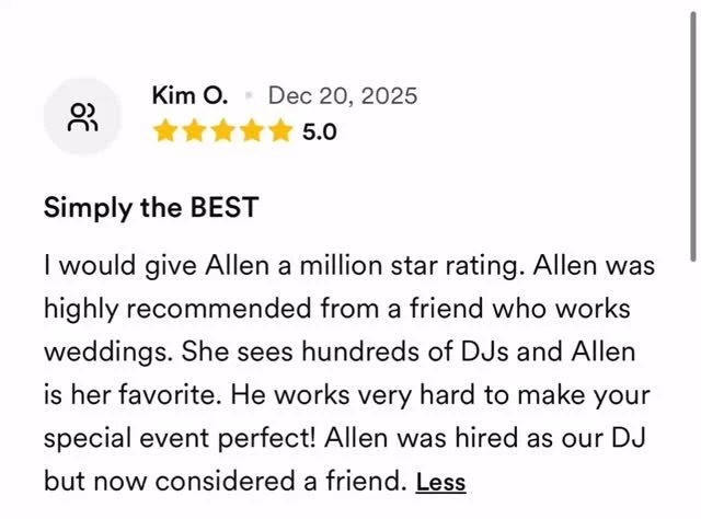 You have a lot on your mind, planning all your vendors. So let’s take a quality, seasoned DJ off that list! From classic favorites to the most current beats, I custom-craft a seamless musical experience that fits all tastes. I work closely with my clients to make their celebration exactly like they want.